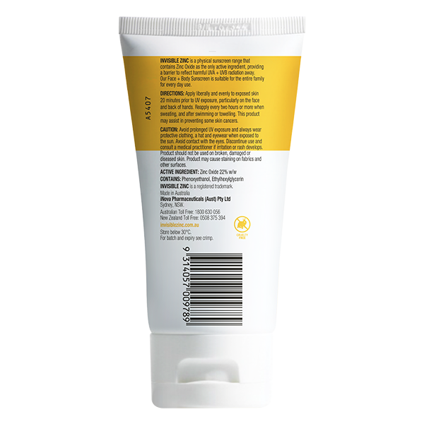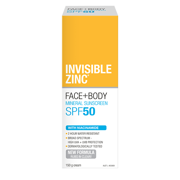 An Australian made mineral sunscreen, the Invisible Zinc Face + Body Mineral Sunscreen SPF50 creates a physical barrier on your skin to protect against the harsh rays of the sun. Suitable for the entire family for everyday use.